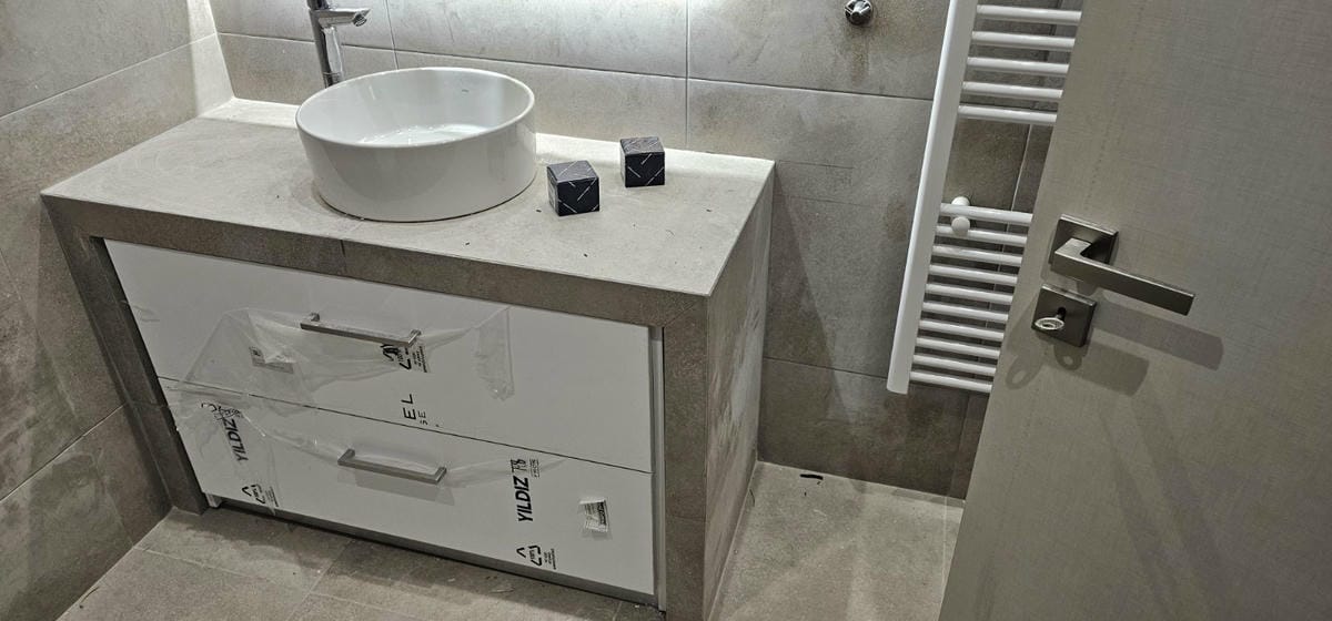 • ΤΟΠΟΘΕΤΗΣΗ ΠΛΑΚΙΔΙΩΝ ΣΤΟ ΜΠΑΝΙΟ (ΜΕ ΝΕΑ ΤΣΙΜΕΝΤΟΚΟΝΙΑ) ΚΑΙ ΣΤΗΝ ΚΟΥΖΙΝΑ